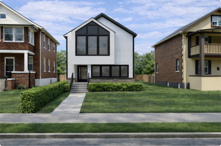 This two-level duplex is a ground-up residential infill concept designed for modern living in the heart of University City. Each unit contains 1,400 square feet with an open main level, 9-foot ceilings, and large front and rear windows that maximize natural light and street presence.